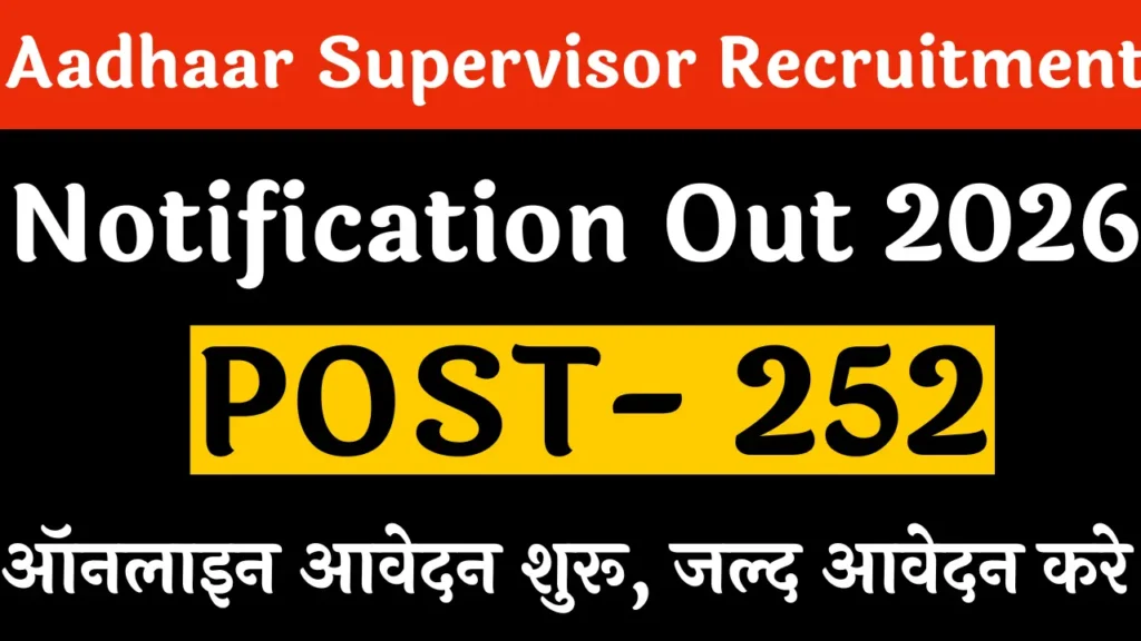 Aadhaar Supervisor Recruitment 2026: डिजिटल इंडिया के इस दौर में आधार कार्ड एक अनिवार्य दस्तावेज बन चुका है। इसी को … Continue reading Aadhaar Supervisor Recruitment 2026: 12वीं पास के लिए आधार सुपरवाइजर भर्ती का नोटिफिकेशन जारी, ऐसे करें आवेदन