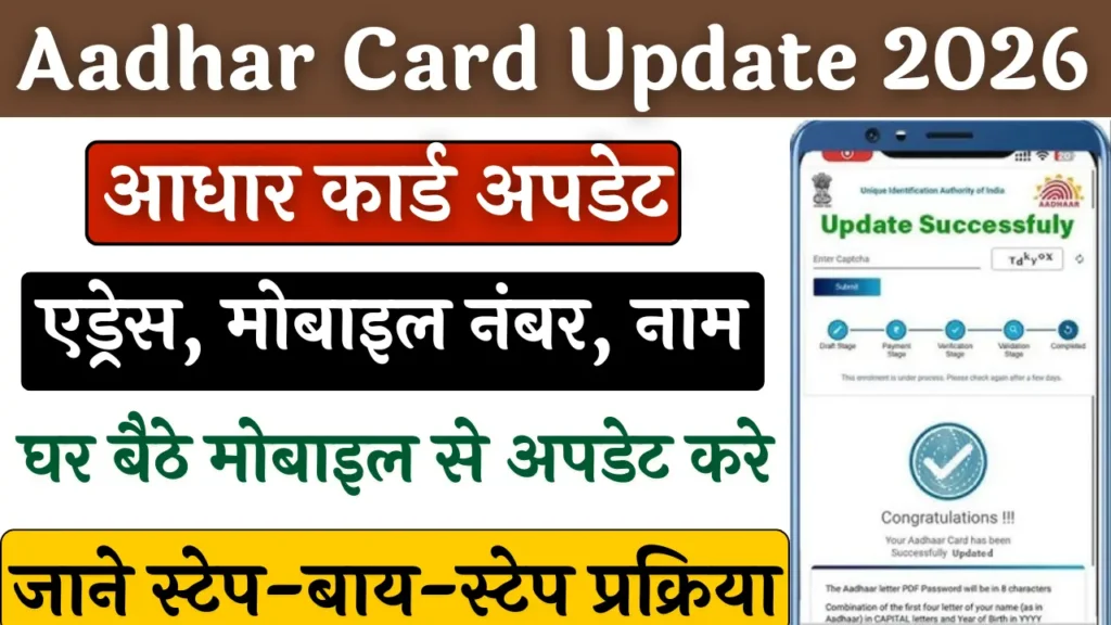 Aadhar Card Update 2026: आधार कार्ड भारतीय विशिष्ट पहचान प्राधिकरण (UIDAI) द्वारा नागरिकों के लिए जारी किया गया एक महत्वपूर्ण … Continue reading Aadhar Card Update 2026: घर बैठे सुधारें आधार में नाम, पता और मोबाइल नंबर; ये है सबसे आसान तरीका!