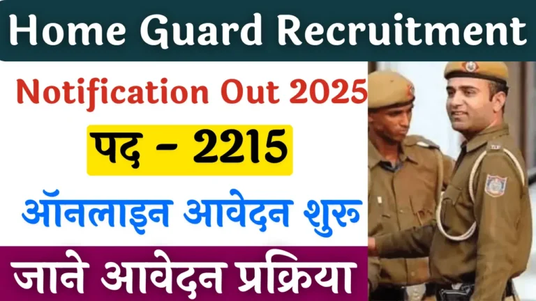 Home Guard Recruitment 2025: होम गार्ड के 2215 पदों पर भर्ती, 10 वीं पास आवेदन करे, आवेदन शुरू