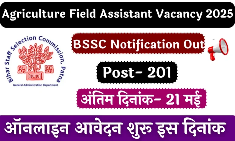 Agriculture Field Assistant Vacancy 2025: राज्य चयन आयोग ने कृषि विभाग के अंतर्गत कृषि क्षेत्र सहायक के पद पर भर्ती...