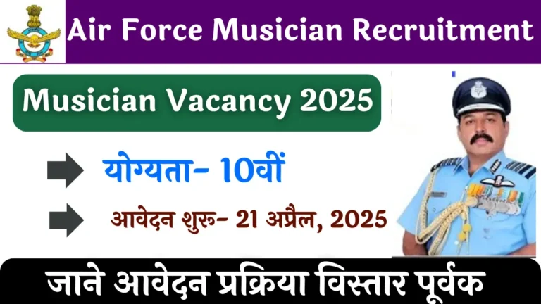Air Force Musician Recruitment 2025: इंडियन एयरफाॅर्स मुजिसिचियन भर्ती का नोटिफिकेशन जारी, 10 वीं पास अभ्यर्थी आवेदन करे इस दिनांक से