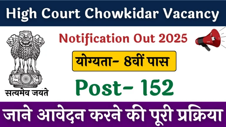 High Court Chowkidar Vacancy 2025: अगर आप सरकारी नौकरी की तलाश में हैं और आपकी शैक्षणिक योग्यता 8वीं पास है,...