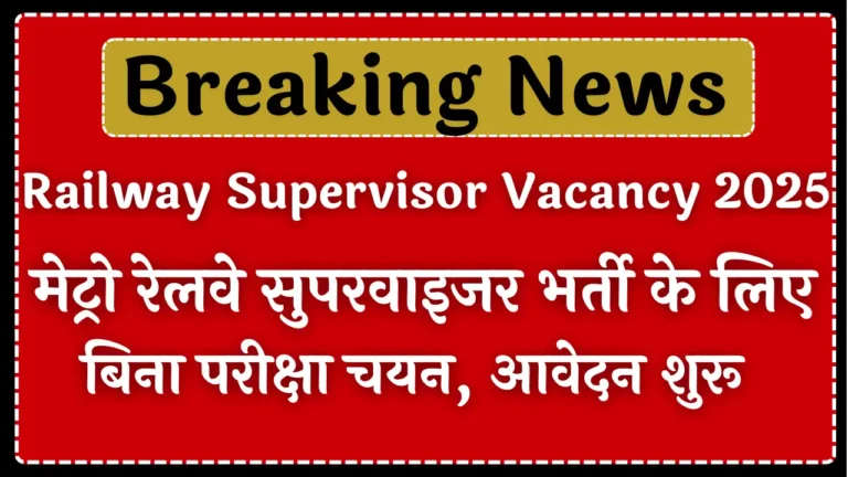 Railway Supervisor Vacancy 2025: भारतीय रेलवे ने 2025 में सुपरवाइजर (Supervisor) पदों पर भर्ती के लिए अधिसूचना जारी कर दी...