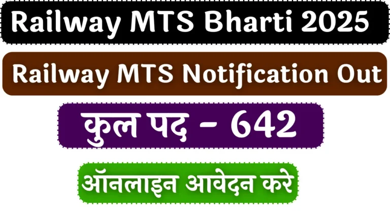 Railway MTS Bharti 2025: रेलवे भर्ती बोर्ड (RRB) ने Railway MTS (Multi-Tasking Staff) भर्तीi 2025 के तहत 642 पदों पर...