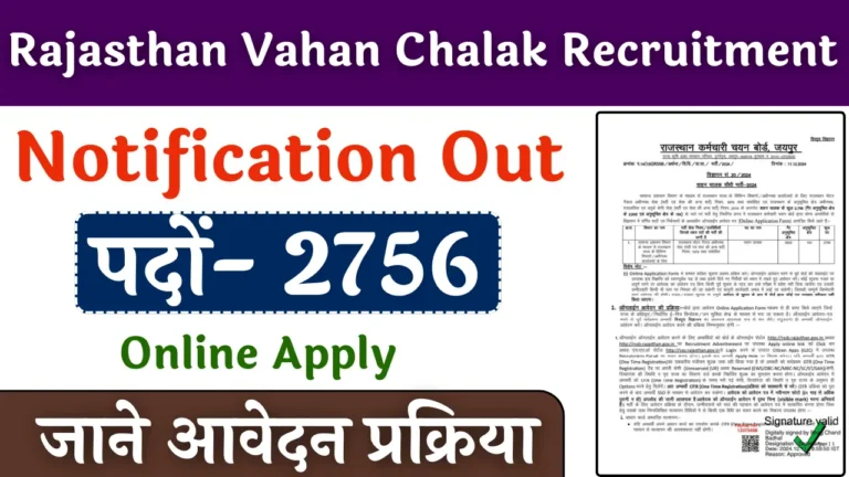 Rajasthan Vahan Chalak Recruitment 2025: 10 वीं पास वालो के लिए वाहन चालक के 2756 पदों पर भर्ती का नोटिफिकेशन जारी, जल्द करे आवेदन