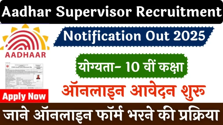 Aadhar Supervisor Recruitment 2025: 10वीं पास के लिए आधार सुपरवाइजर के पदों पर बंपर भर्ती, जानें पूरी जानकारी