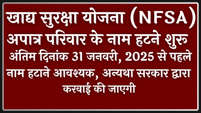 Rajasthan NFSA Update 2025: राजस्थान में राष्ट्रीय खाद्य सुरक्षा अधिनियम (NFSA) के तहत अपात्र लाभार्थियों को हटाने की प्रक्रिया तेज...