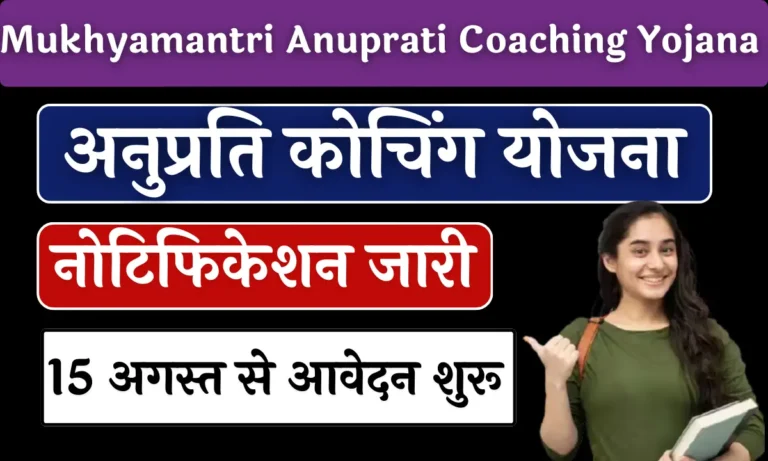 Mukhyamantri Anuprati Coaching Yojana: मुख्यमंत्री अनुप्रति कोचिंग योजना 2025 का नोटिफिकेशन जारी, इस दिनांक से आवेदन शुरू