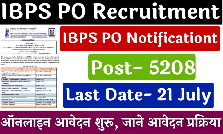 IBPS CRP PO/MT-XV Notification 2025: बैंकिंग कार्मिक चयन संस्थान (IBPS) के द्वारा प्रोबेशनरी अधिकारी (PO)/ मैंनेजमेंट ट्रेनी पद के लिए...