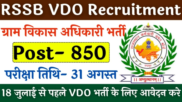 RSSB VDO Recruitment 2025: राजस्थान में 850 ग्राम विकास अधिकारी पदों पर आवेदन शुरू, अंतिम दिनांक 18 जुलाई से पहले आवेदन करे