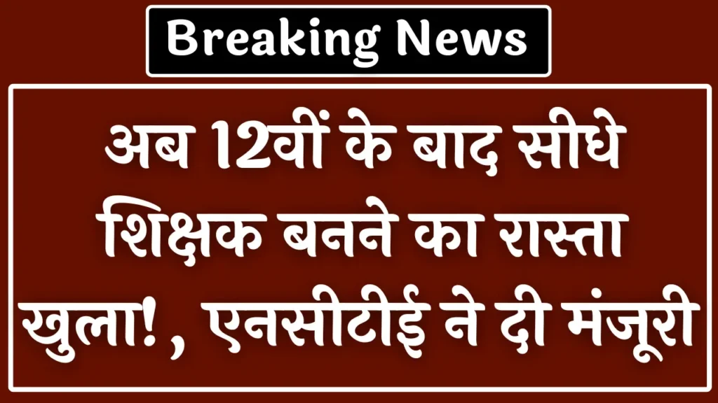 BED Course New Update 2025: अगर आप शिक्षक बनने का सपना देख रहे हैं, तो आपके लिए खुशखबरी है! अब बीएड (B.Ed) करने के लिए ग्रेजुएशन तक इंतजार नहीं करना पड़ेगा। राष्ट्रीय अध्यापक शिक्षा परिषद (NCTE) ने अब 12वीं के बाद ही इंटीग्रेटेड टीचर एजुकेशन प्रोग्राम (ITEP) को मंजूरी दे दी है। आपको बता दे … Continue reading BED Course New Update 2025: अब 12वीं के बाद सीधे शिक्षक बनने का रास्ता खुला! NCTE ने बीएड इंटीग्रेटेड कोर्स को दी मंजूरी