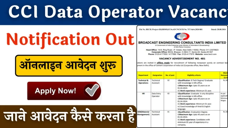 CCI Data Operator 6 Vacancy 2024: सीमेंट कारपोरेशन ऑफ़ इंडिया लिमिटेड में नई भर्ती का नोटिफिकेशन जारी, जाने पूरी जानकारी