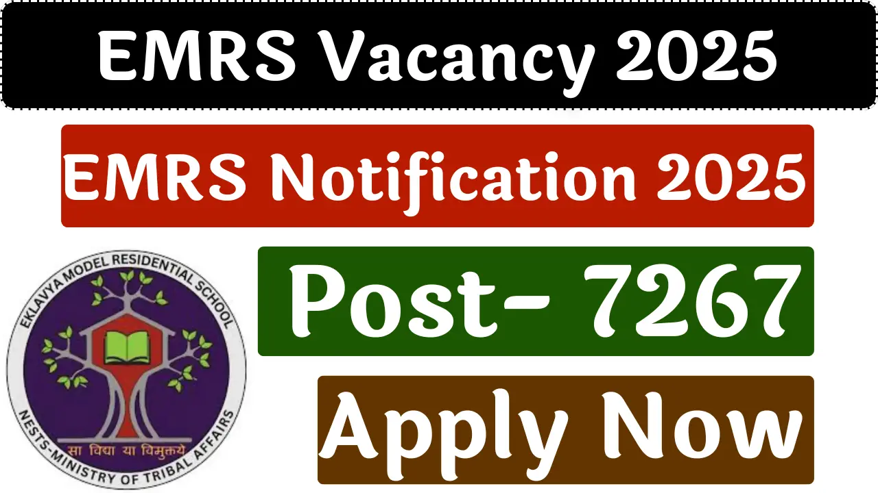EMRS Vacancy 2025: दोस्तों आपको बता दे कि आदिवासी इलाकों में रहने वाले छात्रों को उचित शिक्षा प्रदान करने के लिए एकलव्य मॉडल आवासीय विद्यालय स्थापित किए गए हैं। एकलव्य आदर्श आवासीय विद्यालयों (EMRS) में टीजीटी, पीजीटी, प्रिंसिपल सहित कई अन्य नॉन टीचिंग पदों पर भर्ती का आधिकारिक नोटिफिकेशन जारी कर दिया गया है। एकलव्य मॉडल आवासीय स्कूल (EMRS) के तहत 7,267 शिक्षण एवं गैर-शिक्षण पदों के लिए आवेदन आमंत्रित किए है।