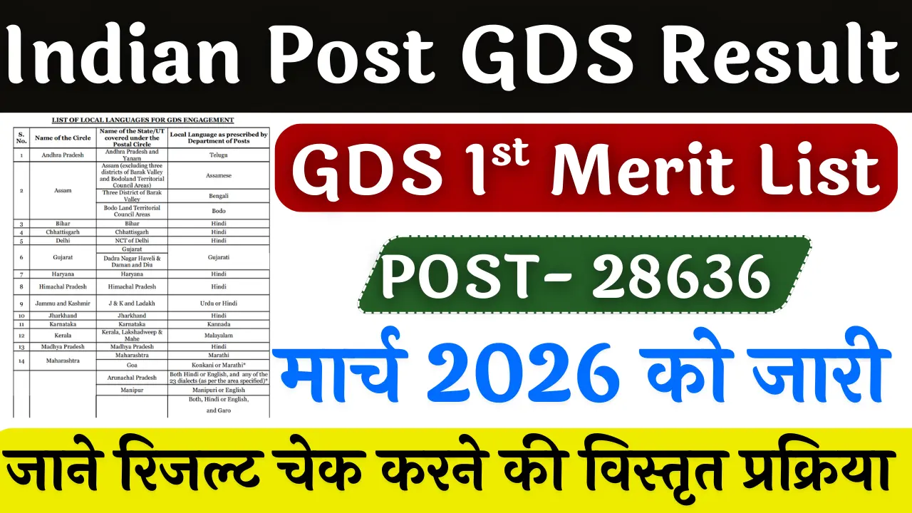 India Post GDS Result 2026: भारतीय डाक विभाग (India Post) द्वारा 28,636 ग्रामीण डाक सेवक (GDS),के पदों पर भर्ती के लिए आवेदन प्रक्रिया पूरी हो चुकी है। अब उम्मीदवारों को बेसब्री से प्रथम मेरिट लिस्ट 2026 का इंतज़ार है। चूंकि इस भर्ती में कोई लिखित परीक्षा नहीं होती, इसलिए चयन पूरी तरह से 10वीं कक्षा के अंकों पर आधारित होता है।
