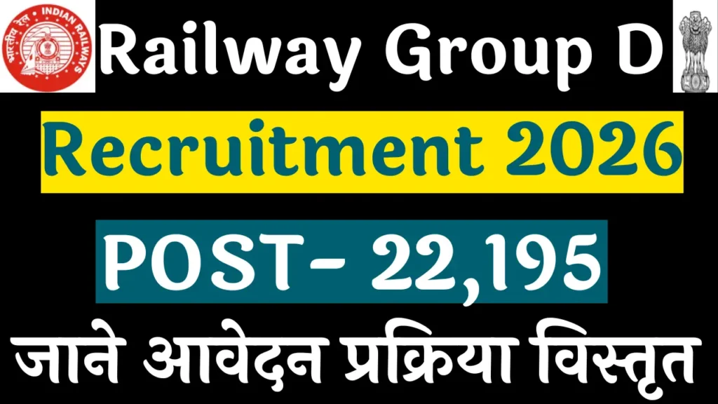 Railway Group D Recruitment 2026: अगर आप सरकारी नौकरी की तलाश में हैं और केवल 10वीं पास हैं, तो भारतीय … Continue reading Railway Group D Recruitment 2026: रेलवे में 22,195 पदों पर बंपर भर्ती, 10वीं पास के लिए सुनहरा मौका!