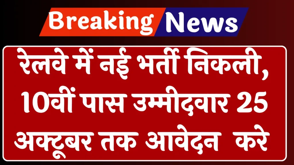 Railway RRC ECR Recruitment 2025: पूर्व मध्य रेलवे (ECR East Central Railway) ने 1149 अपरेंटिस पदों पर भर्ती के लिए आधिकारिक अधिसूचना वेबसाइट पर जारी की है। इस भर्ती के लिए ऑनलाइन आवेदन शुरू हो चुके है और आवेदन करने की अंतिम दिनांक 25 अक्टूबर, 2025 तय की गई है। इस भर्ती के लिए 10वीं … Continue reading Railway RRC ECR Recruitment 2025: 1149 अप्रेंटिस पदों पर नोटिफिकेशन जारी, 10वीं पास आवेदन करें