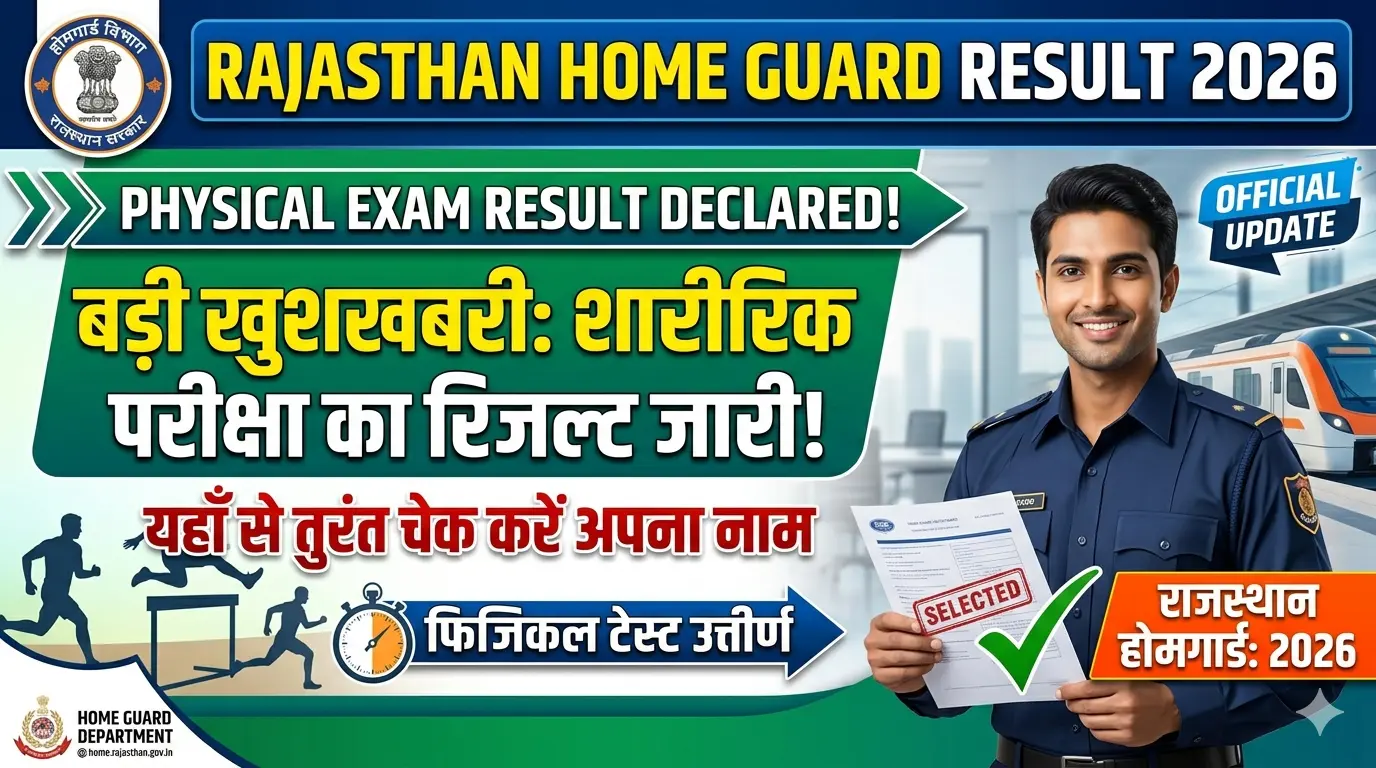 Rajasthan Home Guard Result 2026: राजस्थान होमगार्ड भर्ती 2026 के फिजिकल टेस्ट (PET/PST) में शामिल हुए अभ्यर्थियों के लिए बड़ी खबर है। विभाग ने आधिकारिक तौर शारीरिक दक्षता परीक्षा के परिणाम 17 अप्रैल, 2026 को घोषित कर दिए है।जैसा की आप सब जानते होंगे की होम गार्ड के लिए शारीरिक परीक्षा का आयोजन 16 मार्च को करवाया गया था। इस भर्ती प्रक्रिया के माध्यम से राजस्थान के विभिन्न जिलों में होमगार्ड के स्वयंसेवकों के रिक्त पदों को भरा जाना है।