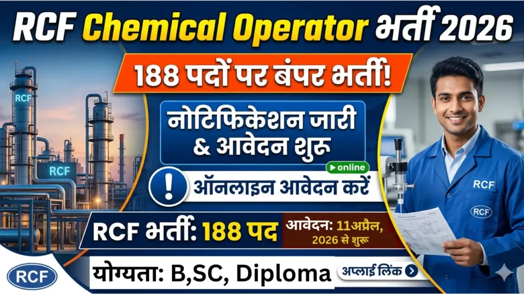 RCF Chemical Operator Bharti 2026: राष्ट्रीय केमिकल एंड फर्टिलाइजर्स लिमिटेड (RCF) ने केमिकल ऑपरेटर ट्रेनी के रिक्त पदों को भरने … Continue reading RCF Chemical Operator Bharti 2026: राष्ट्रीय केमिकल्स और फर्टिलाइजर्स लिमिटेड में बंपर वैकेंसी, नोटिफिकेशन और आवेदन लिंक यहाँ देखें